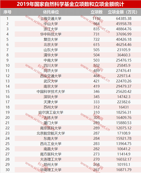8月16日,国家自然科学基金委员会公布了2019年度国家自然科学基金集中申请项目评审结果。目前我校有312个项目获得资助,资助数位列全国第18位(数据来源:科学网),省内高校第2位,资助直接费用16431万元,资助经费位列地方高校第1位,创同期资助经费新高。2019年申报项目数、资助项目数、资助经费均高于去年同期,资助项目数连续八年位列全国前20位。