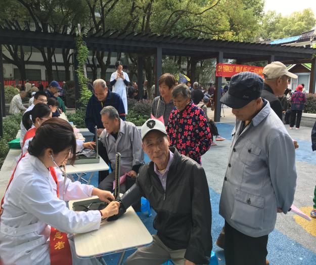 10月10日下午同一时间,苏州大学附属广济医院还派出4名医护人员前往花倪村开展义诊宣教活动,活动吸引了很多村里的老人前来参加,受到一致好评。