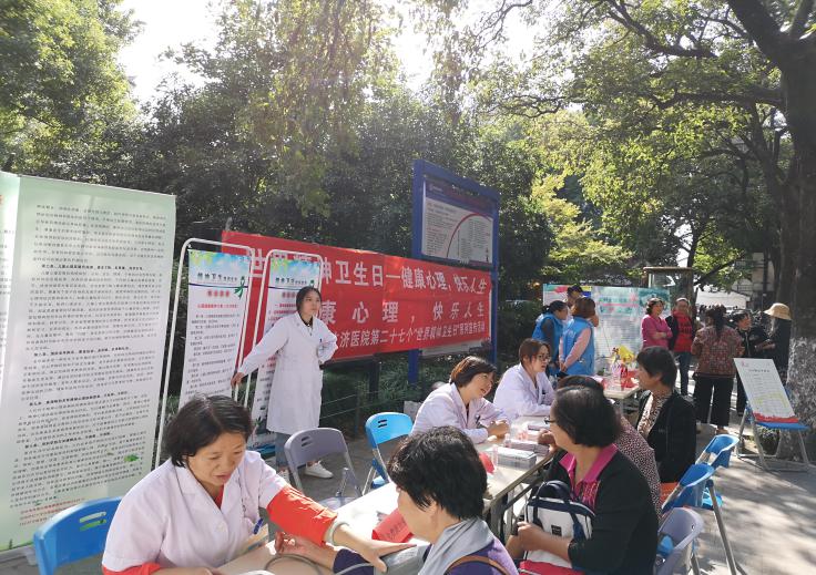 2018年10月10日是第27个世界精神卫生日,今年的精神健康主题是“健康心理,快乐人生”。苏州大学附属广济医院为了纪念世界精神卫生日和更好的向社会传播精神卫生知识,呼吁全社会更加关注精神卫生、心理健康,于10月10日到10月12日连续三天走进多个社区开展多场义诊活动。