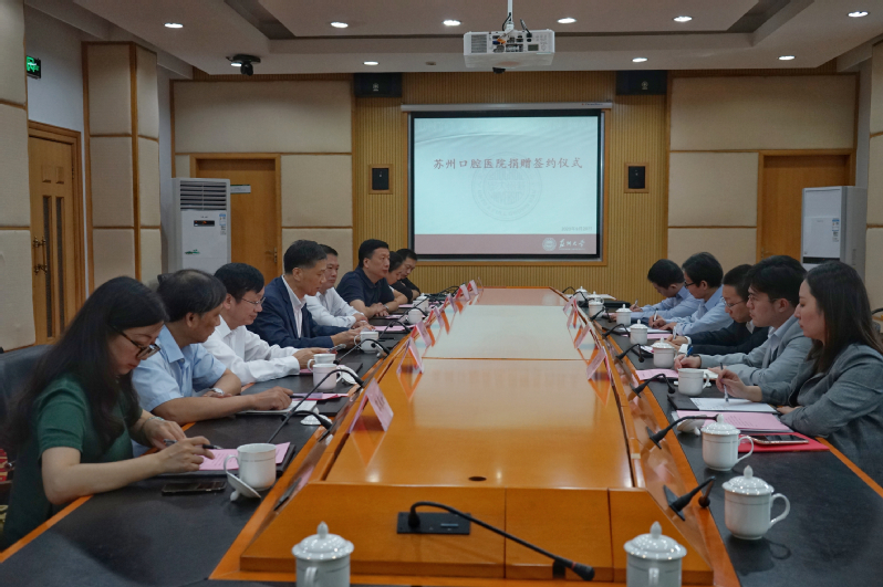 9月20日上午,苏州大学附属口腔医院向苏州大学捐赠200万元签约仪式在天赐庄校区红楼201举行。苏州大学附属口腔医院院长谈永暐、副院长陆史俊,我校副校长杨一心及相关职能部门、学院(部)负责人参加了签约仪式,捐赠签约仪式由医院管理处处长徐小乐主持。