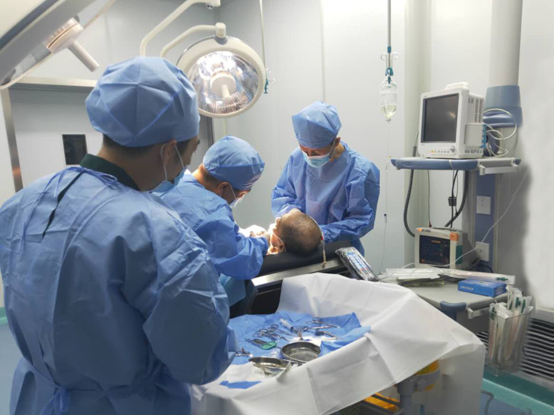 清晨,急促的担架声影响到正在床旁交班的医护人员,患者呼吸困难进行性加重,极度烦躁,值班医生向家属了解病情,患者男性、68岁、喉癌11年、牙龈癌 8年,呼吸困难 15天,刘瑞主任当机立断做出处置方案,家属同意,立即将患者推入急诊手术室进行气管切开术,手术室借电刀,耳鼻喉科孙兆义医生主刀,急诊科孟和勿力吉医生一助,马广秀护士配台,一台紧张有序的手术开始了,手术准备过程中患者意识模糊,随着手术的进展患者意识转清,呼吸困难好转,急诊住院数天,好转出院。