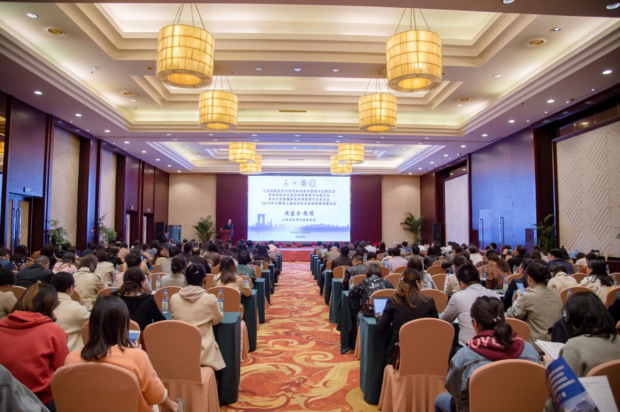 11月9日,由江苏省医院协会、苏州市医学会、苏州大学医院管理处主办,苏州大学附属第一医院承办的江苏省医院协会医院科技教育管理专业委员会2019年年会、苏州市医学会医学科研管理专业委员会2019年年会、苏州大学附属医院科教管理专业委员会2019年年会、第五届姑苏医学科研管理高峰论坛在苏州顺利召开。中国医院协会副会长,江苏省医院协会会长黄祖瑚教授,苏州市医学会会长、苏州市卫健委谭伟良主任、苏州市卫健委科教处殷桂霞处长、江苏省医院协会医院科技教育管理专业委员会主任委员,苏州大学附属第一医院院长侯建全教授、苏州大学医院管理处徐小乐处长,以及来自全国知名高校、医院、我校各附属医院科教管理负责人近300名代表参加了本次会议,会议由江苏省医院协会医院科技教育管理专业委员副主任委员、苏州大学附属第一医院副院长陈亮教授主持。