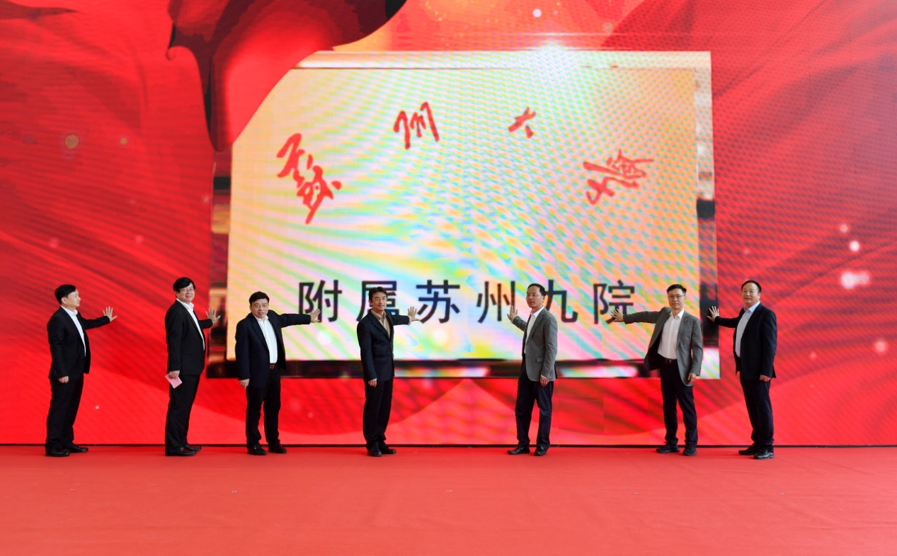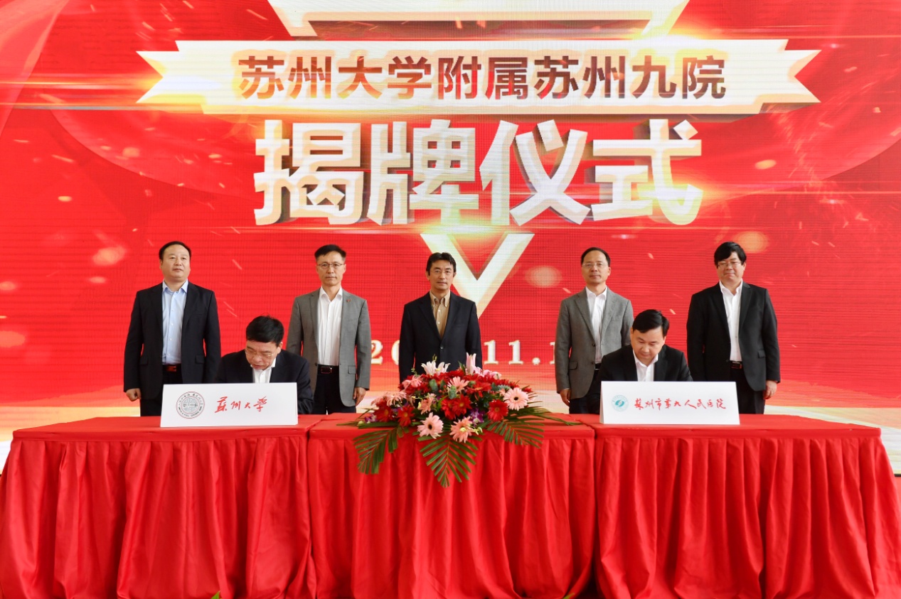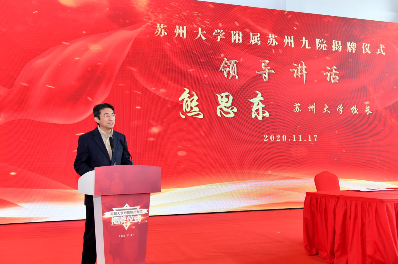 11月17日上午,苏州大学附属苏州九院(苏州市第九人民医院)揭牌仪式在苏州市第九人民医院举行。苏州大学校长熊思东,吴江区委副书记、代区长王国荣,苏州大学副校长、苏大附一院党委书记陈卫昌,苏州市卫健委副主任陈小康,吴江区副区长汤卫明以及苏州大学相关职能部门及医学部负责人出席会议。