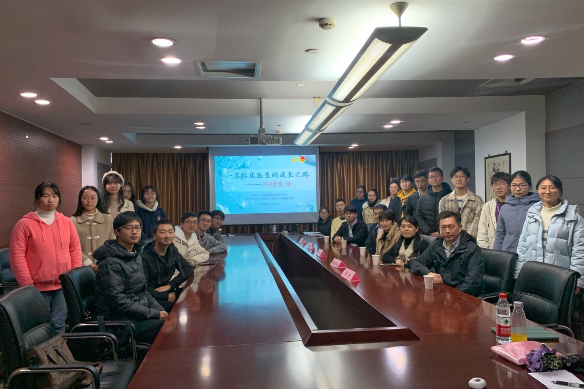 11月26日下午,医院管理处党支部根据共建学生团支部的诉求,特别邀请了苏州大学附属第二医院骨科贾鹏、内分泌科张弘弘、口腔科钱蕴珠、肿瘤科彭啟亮四位医师走进独墅湖炳麟图书馆825教室,为学生开展《厚积薄发----一名医生的科研之路》座谈会。四位医师从各自不同的学习、临床及科研经历出发,简单对医院各科室的运转规则、基本职责、科研注意事项等进行介绍,希望同学们要珍惜当下最宝贵的学习时光和学校提供给他们的良好学习条件,及早做好自我定位,思考清楚自己未来的方向,鼓励同学们面对困难要发挥主观能动性迎难而上,发扬“钉钉子”的精神,锲而不舍、久久为功。之后,学生们与医生们面对面交流提问,进一步针对性的解疑答惑,同学们被医生们的亲身经历与真诚的话语所触动,纷纷表示要培养终身学习的习惯,注重理论与实践结合,努力成为一名优秀的医生。