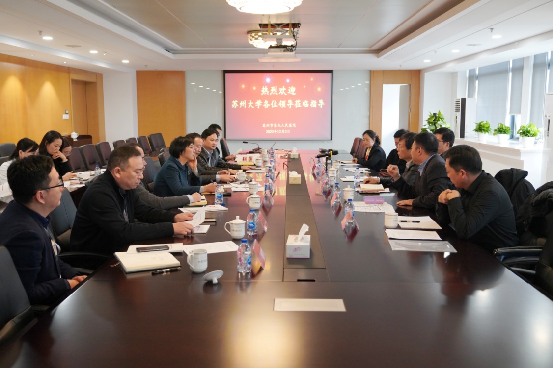 12月3日上午,苏州大学医院管理处处长徐小乐和唐仲英医学研究院血液学研究中心党委书记芮秀文、副院长戴克胜、副主任朱力等一行专家赴苏州市第九人民医院,区卫健委党委书记、主任、院党委书记沈宇和院长沈根海等院领导班子出席。首先,医院领导陪同专家参观了医院的中心实验室,中心实验室副主任李斌就实验室概况作了详细介绍。随后,双方就教学科研合作及对接事宜进行了深度探讨。沈根海院长介绍了医院的整体概况,他表示,医院在2020年9月增列为苏州大学非直属附属医院,此次增列将为医院推进医教研协同发展,深化高层次创新人才培养模式改革,为科学研究、教育培训、人才培养提供更大空间,非常期待本次会议后将为医院医、教、研三方面带来实质性帮扶。分管科教院长吴巧珍从近三年获得科研立项及奖励、硬件设施、科室科研项目及成果三个方面汇报了医院的科研现状,并介绍了医院肿瘤血液科、心血管内科、普外科、呼吸内科、骨科、神经内科各科室的概况,提出医院目前存在的不足之处:科研平台建设薄弱、学术委员会建设薄弱、科研人才短缺。