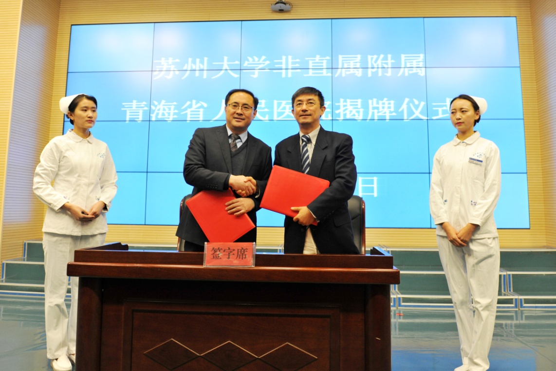 苏州大学自2009年与青海省人民医院建立了友好关系以来,与医院签订了人才培养协议,努力培育兼具“自由之精神、卓越之能力、独立之人格、社会之责任”的新时代“完人”;现已为医院培养博士、硕士研究生73名,在职硕士研究生62名,为青海省人民医院实现建设国际缺氧医学研究基地、国家高原临床医学研究基地、青藏高原区域性医疗中心的目标提供了人才保障。