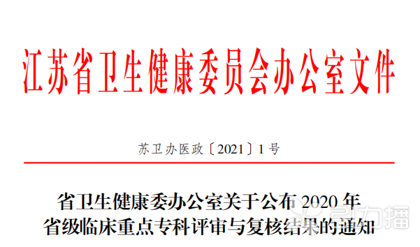 建立强大的重点专科体系和扎实的人才培养环境,是实现医院可持续发展的基础和关键,也是医院整体医疗技术水平的重要标志。为不断提高医疗技术水平,增强医疗服务能力,根据《江苏省省级临床重点专科管理规定》有关要求,依据相关评分标准,2020年江苏省组织对444个新申报专科和88个原省级临床重点专科建设单位进行了评审及复核,并经公示及进一步核查,于日前公布了最终结果。