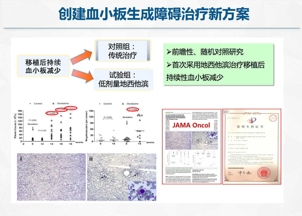 针对难治性血小板减少、恶性血液肿瘤合并DIC及造血干细胞移植后出凝血异常等高危难治疾病,建立了一系列治疗新方案,显著提高了疗效和生存率。上述成果推广应用至北京、天津、上海、广州等三甲医院,获得了广泛的社会效益,显著提升了我国血液系统疾病出凝血异常诊疗水平,改善了患者总体预后。