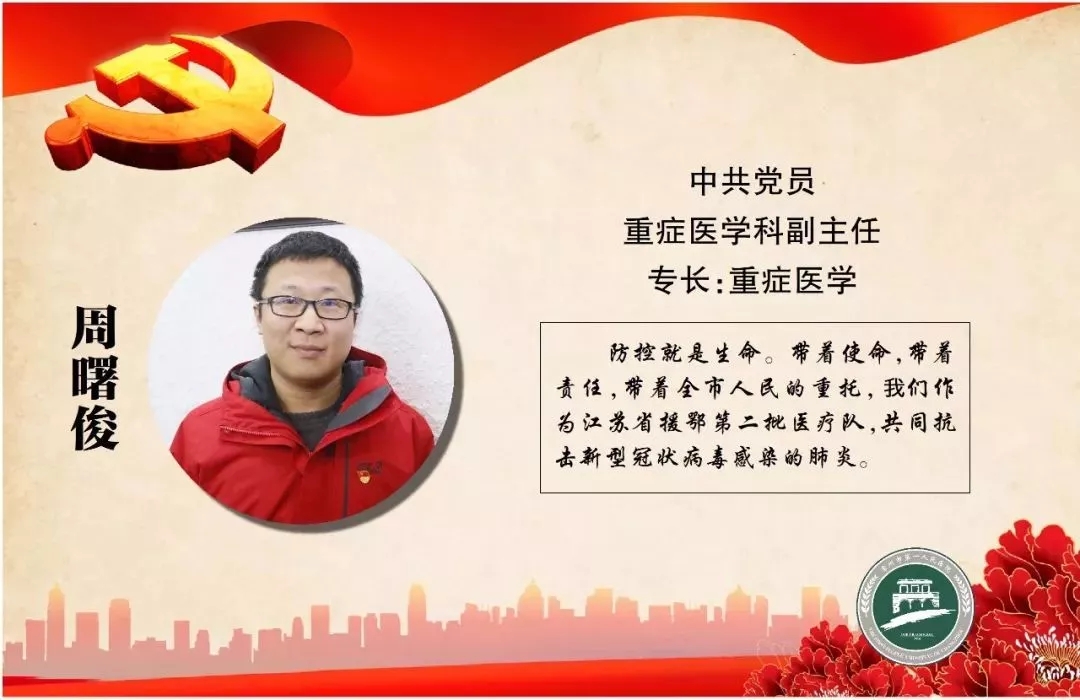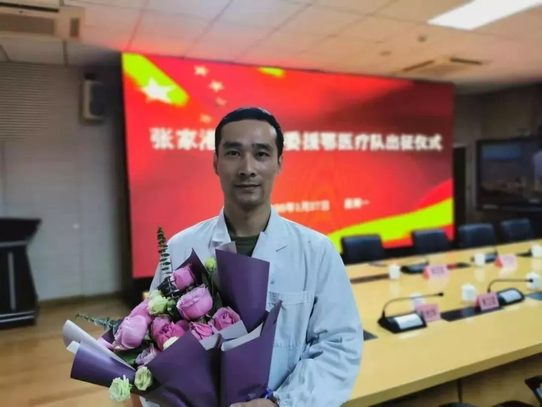 周锦桃是呼吸内科主任,中共党员,副主任医师,收到招募通知后他主动请缨。他说,科室里工作很忙,几位主治医师都各有困难,孩子还小,自己去最合适。周锦桃夫妇是医院的双职工,当问及是否会舍不得家人时,他坚定地说“特殊时期,有舍才有得。”