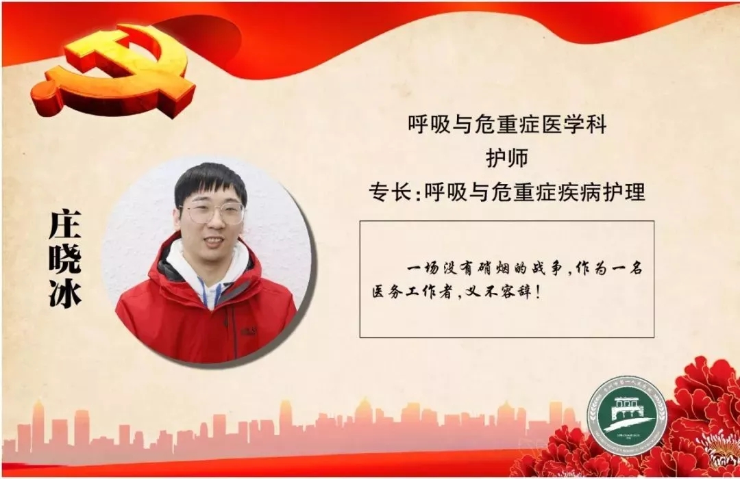 90后的庄晓冰是呼吸与危重医学科护师,也是此次援鄂医疗队中最小的队员,但他已是一名有着八年护理经验、经历过禽流感等疾病的护士了。年初二深夜,接到医院需要护理人员驰援武汉的消息时,他毫不犹豫报了名。“没想到真的来了!”他跟结婚刚满三年的妻子说,“这个时候该我上了!”
