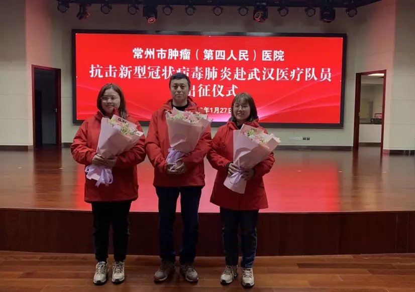苏州大学附属常州肿瘤医院三位医护人员奔赴湖北,从左到右:王涛、闻立新、袁涛