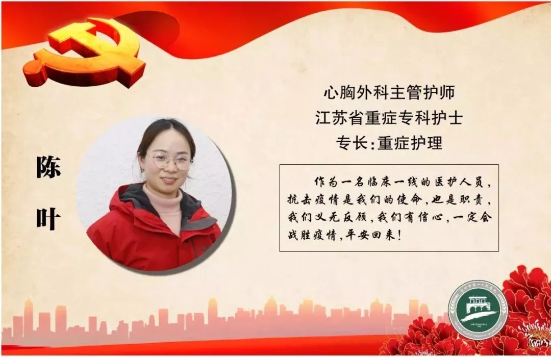 临行前一天,6岁的儿子迟迟不肯睡去,知道妈妈要出远门的他,一直吵着要一起去。心胸外科主管护师、江苏省重症专科护士陈叶只能安抚:“现在,只有医生和护士才能去武汉。”儿子似懂非懂,她的心中却是使命召唤。“2003年非典,我还是在医院实习的小护士,现在已是一名有着16年工作经验、具有江苏省重症专科护士培训经历的主管护师,这个时候,我必须冲在前面,责无旁贷!”