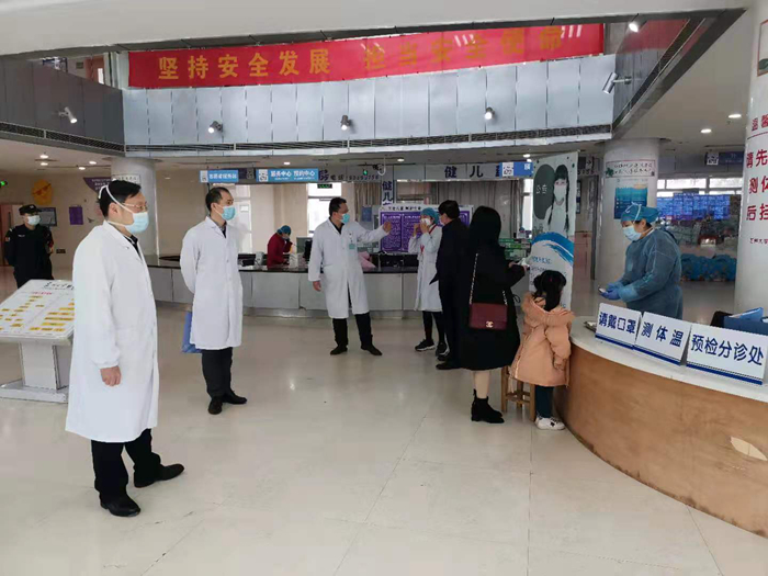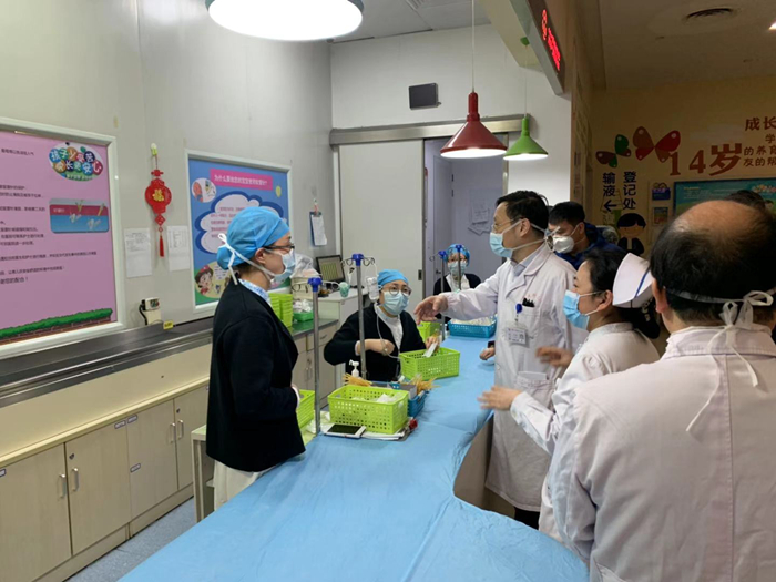 1月25日(初一)上午,针对疫情防控的具体工作落实情况,汪健院长和严向明副院长分别在总院和景德路院区开展了行政查房。查房的重点区域是院内人员较为密集的场所,如门急诊、补液中心、急诊留观室等区域。汪健院长指出,一方面我们要进一步加强对就诊患儿的预检分诊工作,另一方面我们更要防止患儿家长之间交叉感染,要通过多种手段及时提醒患儿家长来院要做好个人防护工作,认真戴好口罩,尤其是在医院补液中心和急诊留观室的家长。同时医务人员自身也要按照感染管理相关要求,认真做好个人防护工作,过一个安定祥和的春节。