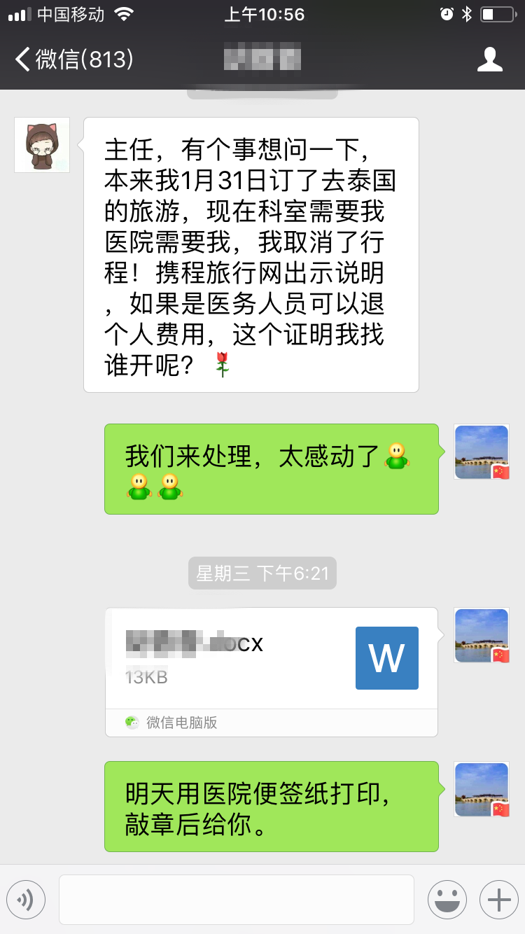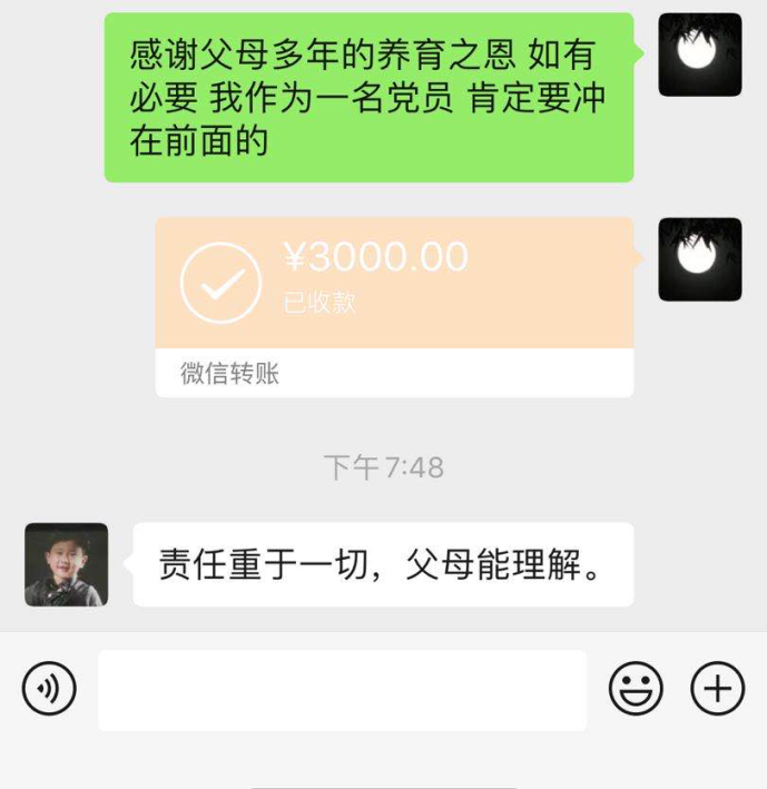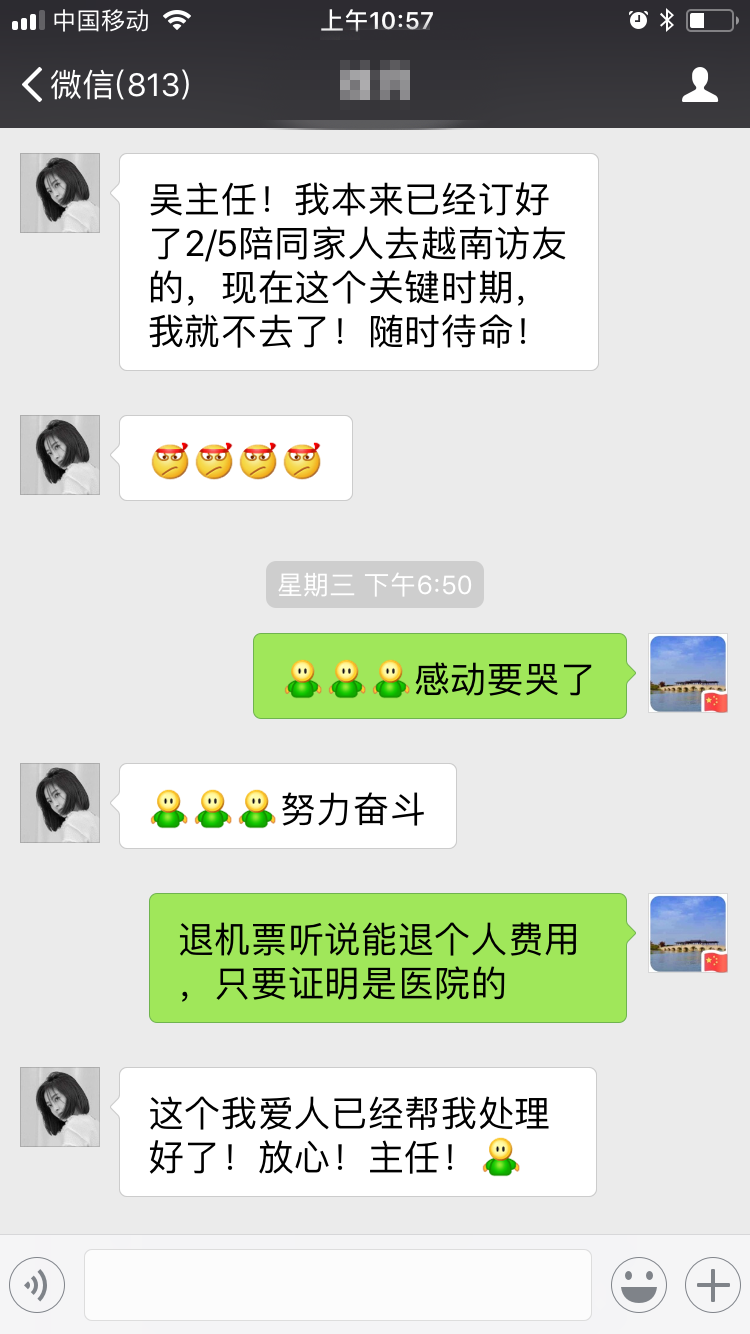 “感谢父母多年的养育之恩,如有必要,我作为一名党员,肯定要冲在最前面的。”医院医务部副部长徐闻涛原本打算和回家与父母团聚,得知疫情消息后,立即通过微信向父母解释了自己的责任。