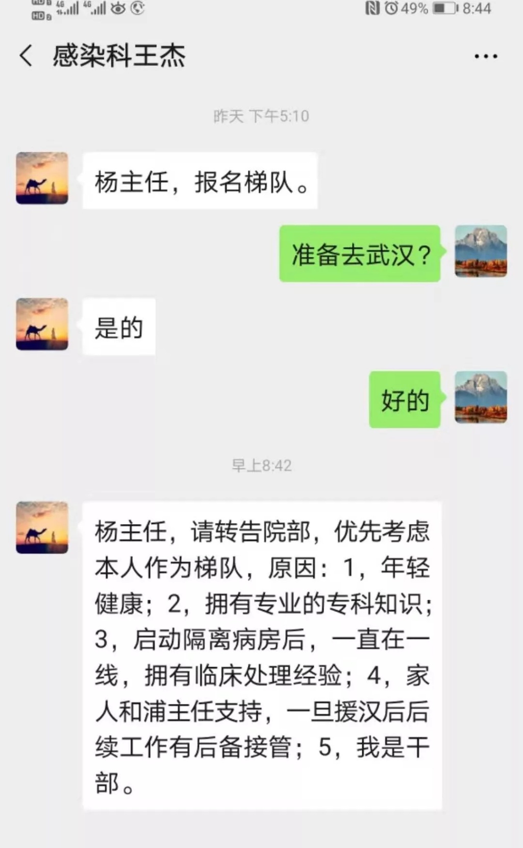王杰副主任在接到疫情通知及开放隔离病房的通知后,立即自告奋勇进入隔离病房。除了对疑似患者进行采样检测工作外,还需负责疑似留观患者的日常诊疗,病情需要随叫随到,毫无怨言。