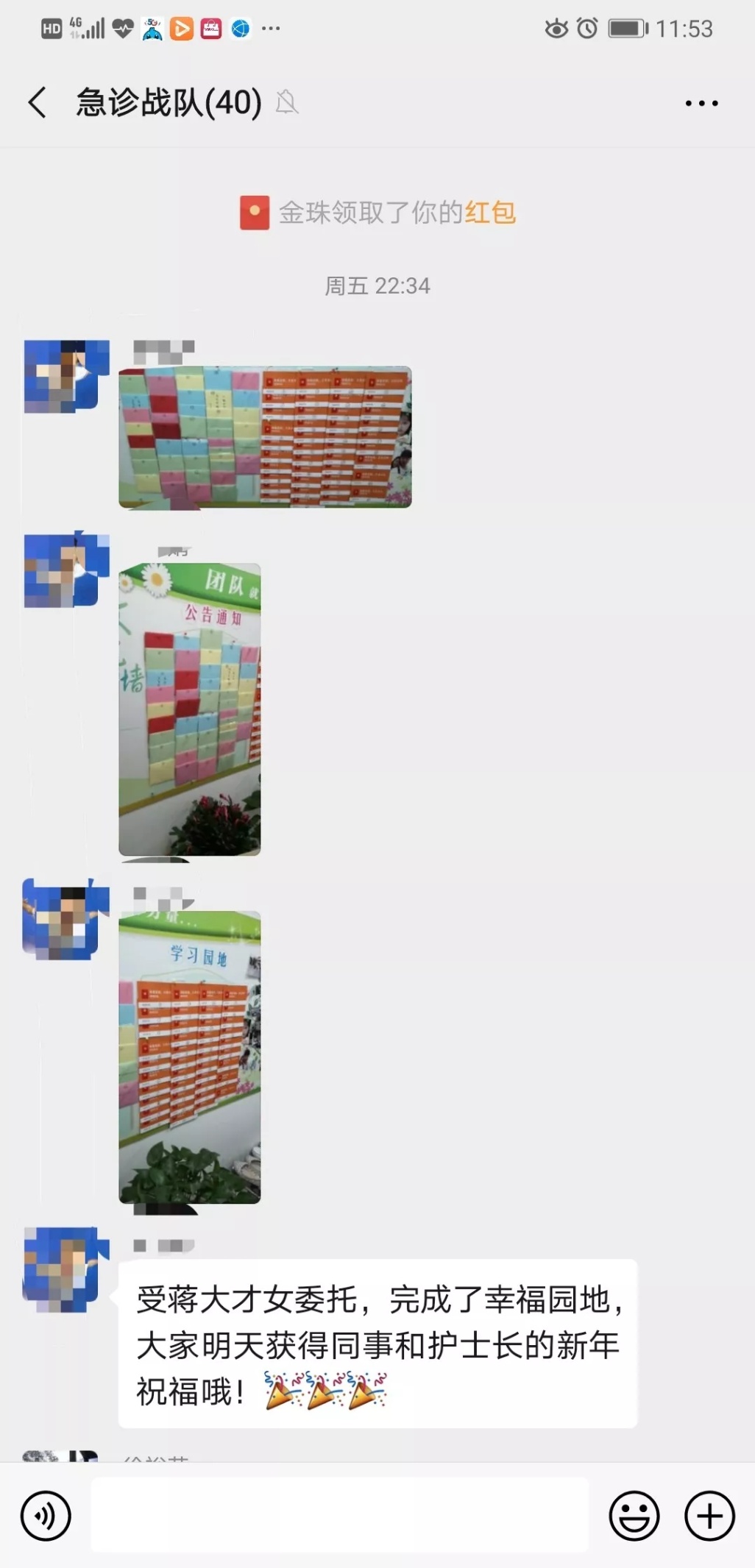为了缓和大家持久作战的疲劳,就在大年初一一早,急诊的医务人员在幸福园地上领到了特殊的“红包”。除了同事之间的报团取暖,医院还收到了热心市民的神秘礼物,有口罩,护目镜,水果,晚餐,他们都带着口罩,放下东西就匆匆而去,虽然医院不认识他们,但是由衷地感谢他们。