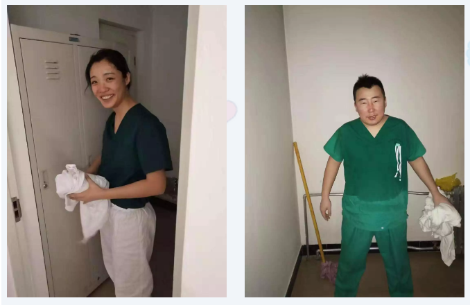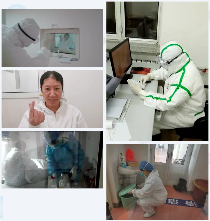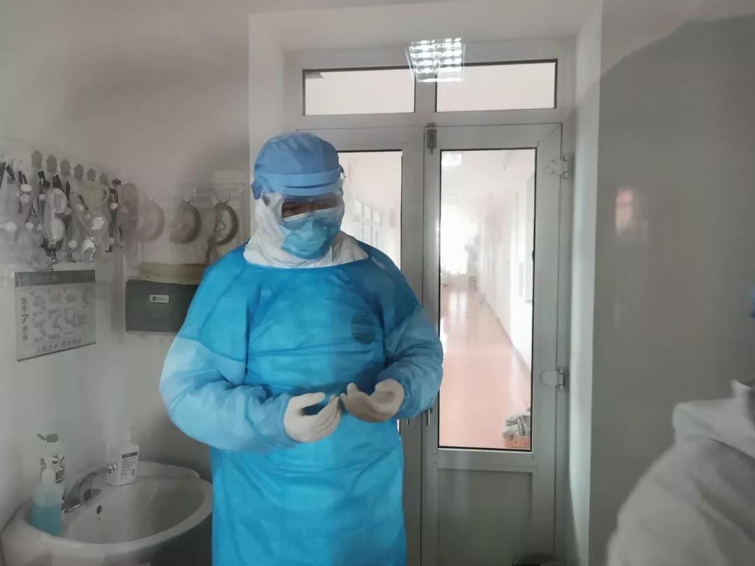 医疗队共有党员8名,医生6人,护士18人。医疗队进驻隔离病房后,立即展开救治工作。医疗队员进入病区前,需提前半个小时开始做更衣消毒隔离准备,进入病区后不能喝水、不能上厕所。医生们24小时跟踪患者病情,进病区查房,调整呼吸机参数。护士每4小时轮班一次,在护理操作中,最难的是要戴2层手套操作,刚进驻第一天防护镜起雾流水,视野看不清,后来医疗队的护士们充分发挥了创造力,结合了自己的专业知识,在防护镜上提前涂洗洁精后才大有改善。