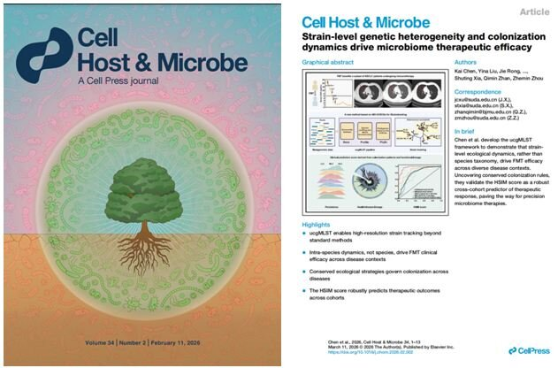 研究中,团队还取得了多项重要创新发现:首次揭示菌株水平的遗传异质性而非物种分类,是驱动粪菌移植治疗效果的核心因素;发现同一物种内不同菌株竟存在截然相反的治疗效应,破解了此前同类研究结论矛盾的难题;同时团队开发了基于480个超保守单拷贝基因(UCSCGs)的高分辨率菌株追踪框架,提出了能有效预测治疗效果的健康菌株评分(HSIM)系统,并筛选出 38 种具有高定植潜力的核心菌株,为精准微生物组治疗奠定了关键理论和技术基础。