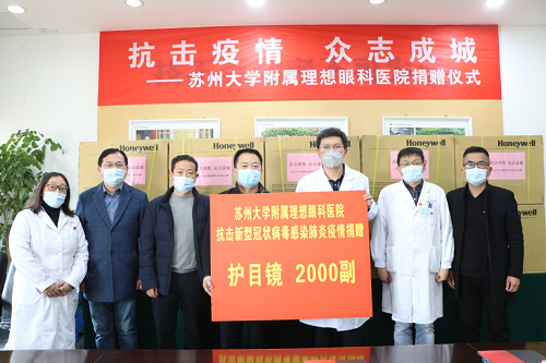 苏大附属理想眼科医院作为医疗行业从业人员,更加为一线医疗工作者的安全忧心,“病毒无情人有情,苏大附属理想眼科医院除了自身加强群防群控意识外,得知病毒会从眼睛侵入而前线护目镜处于紧缺状态,我们立即行动联系有关生产销售渠道,积极进行筹措订购,全力为奋战在一线的医务人员提供支持,尽我们的一点绵薄之力,愿我们早日战胜疫情。”苏大附属理想眼科医院副院长尤海章说道。