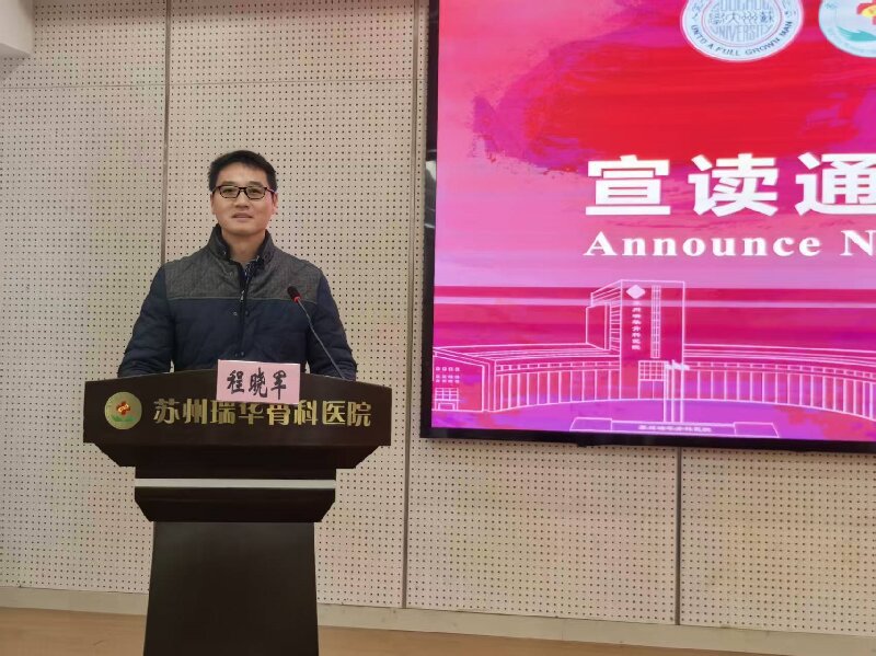 程晓军处长宣读了《关于将苏州瑞华骨科医院增列为我校合作医院的通知》,他希望苏州瑞华骨科医院充分发挥骨科优势,把科研成果转化为临床需求,共同推动学科建设的发展,最终惠及百姓健康。
