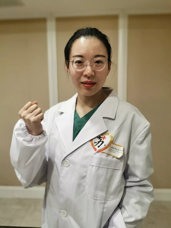 在武汉,在高强度、高压力、高要求下她主动挑战护理病区最危重的患者,如气管插管、无创呼吸机、高流量氧疗患者等,她是苏州二队气切小分队中的一员,参与医疗队分管病区唯一一例气管切开手术,在她的护理工作过程中,随时可能产生气溶胶,极其危险,为了救更多的患者,她义无反顾、无怨无悔。她说:我们每天的工作日常其实和我在脑ICU工作时差不多,每天为患者吸痰吸氧、输血输液、更换尿不湿、擦大小便、发饭喂饭、发药喂药等等,我们只是换了一套衣服,换了一个地方履行自己的本职工作而已。她说得很轻描淡写,大家不知道的是就在出发当天凌晨,她的奶奶突然离世,她擦干眼泪,没来得及送奶奶最后一程,就为了自己的使命前往疫情最前线。她和同事将“张家港精神”写在了防护服上,时刻激励自己,发扬张家港精神,用行动诠释“90后”的勇气和担当,她不再是温室里的花朵,而是傲然开放的早樱!