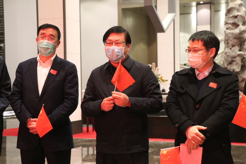 最后,江涌书记向援湖北医疗队队员赠慰问品,全体与会人员合影留念。