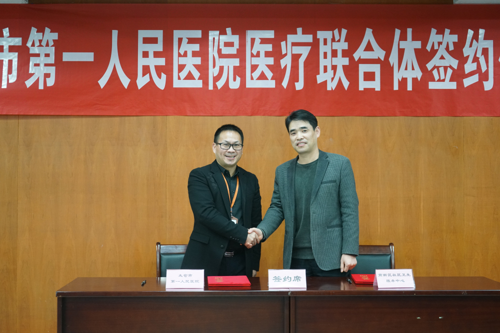 医院与市港区医院蔡俊副院长、市第三人民医院孙健院长、科教新城社区卫生服务中心徐波主任和高新区社区卫生服务中心徐永清主任依次签约。