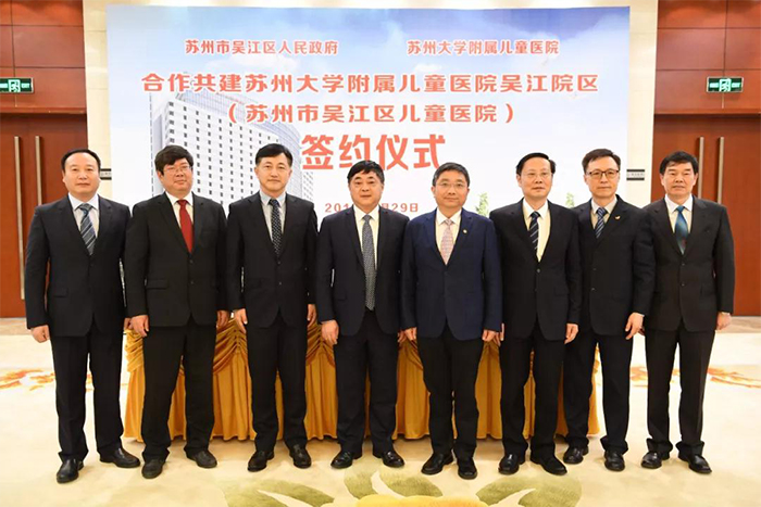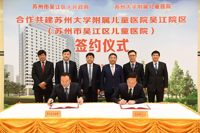 3月29日上午,吴江区人民政府和苏大附儿院合作共建的苏州大学附属儿童医院吴江院区( 苏州市吴江区儿童医院)的签约仪式在吴江会议中心举行。