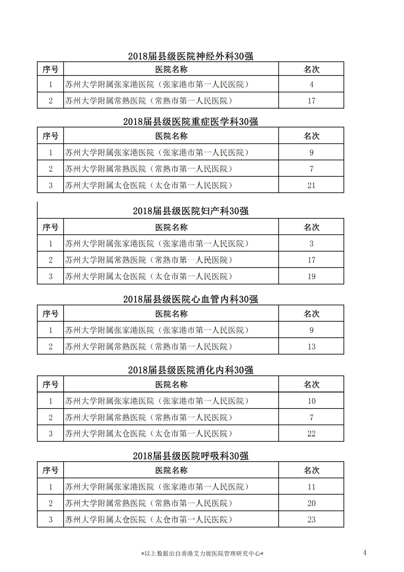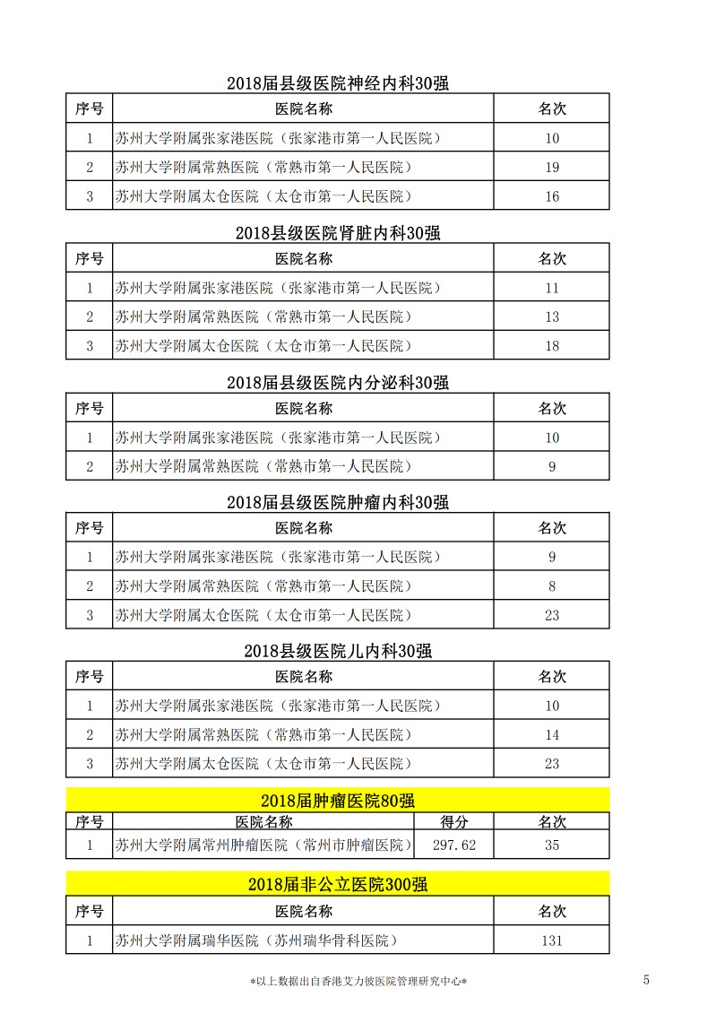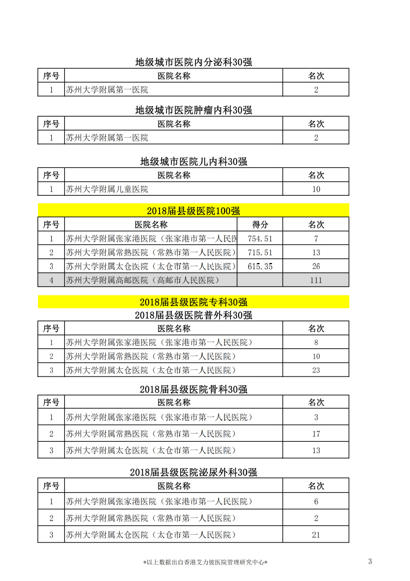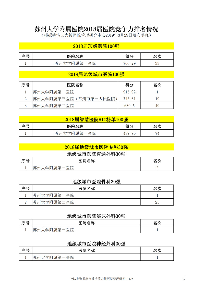 苏州大学附属医院2018届医院竞争力排名情况发布
