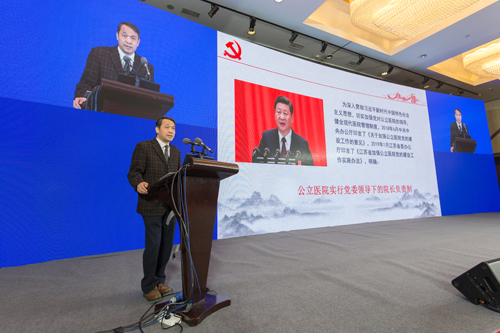 大会由国家卫健委主管的中国生命关怀协会主办,常州市卫健委和常州市医学会共同承办。医院党委书记张晓膺受邀在大会上发言,他以《加强党建在新时期人文医院建设中的初步探讨》为题,从完善议事决策制度、加强领导班子建设、推进干部和人才队伍建设、强化基层党组织建设、党建引领医院文化建设等五个方面深入探讨了如何落实党委领导下院长负责制。他指出,党建引领医院文化重点需抓住两大方面:第一,抓意识形态,把握新闻宣传舆论阵地,筑牢思想防线,加强正面舆论引导。第二,抓精神文明建设,加强载体建设,树立先进典型,丰富文体活动,增强职工素质。精彩的发言获得全场的阵阵掌声,与会者纷纷认为获益匪浅。
