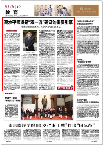 在国家启动“双一流”大学建设的大背景下,中国高校面临着新一轮洗牌,高校间的人才引进战和保卫战早已打响。对苏州大学来说,必须继续坚定不移、持之以恒地抓师资队伍建设,要适应新形势、拿出新战略。