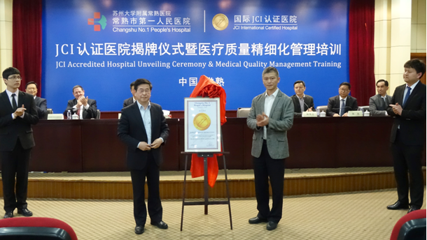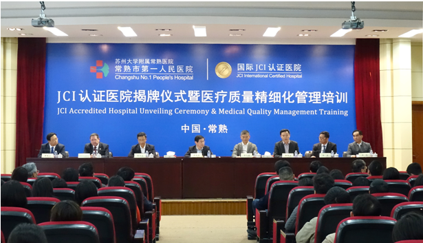常熟市卫计委朱兴元主任在致辞中指出,近年来,常熟的医疗卫生事业得到了快速的发展,2016年全市门诊总量突破了1300万人次,出院人次数超过26万人次。卫生事业的发展需要更高的管理水平,需要更好的质量,更安全的医疗服务。JCI作为国际上公认的最先进的医院管理的标准,其核心就是“医疗质量与安全”,“一切以患者为中心”的服务理念。常熟市第一人民医院在深化改革的过程中,自加压力,负重奋进,通过2年多的辛勤的努力,于今年2月正式通过了JCI的国际认证,成为苏州地区首家通过国际认证的公立综合性医院,这份荣誉不仅仅属于苏州大学附属常熟医院,也属于全市医疗卫生系统,是常熟医疗卫生服务走向国际的一个重要标志。朱兴元主任希望医院以此为契机,将JCI标准内化于心,外化于形,将医疗质量和安全融入到每一个工作岗位,体现于每一个工作流程,反映到每一个工作细节,真正做到一切以患者为中心,为保障百万常熟人民身体健康和生命安全,推进健康常熟,精致常熟做出更大的贡献。