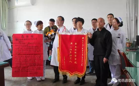 在帮扶期间,郝创利教授还成功救治了旬邑县郑家镇郑家村一名多脏器衰竭的危重患儿。在救治期间,郝教授多次深夜到患儿床前查房问诊,制定治疗方案。得知该患儿家庭贫寒时,又自己出资为患儿买玩具衣物。患儿的爷爷70多岁的老人热泪盈眶,连声称赞郝教授医术高明,医德医风好。在孩子康复出院时,他制做了两面锦旗分别赠送郝创利教授和旬邑县医院儿科。郝创利教授良好的医术和医德医风被旬邑电视台报道。