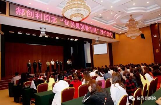 郝创利教授动情地说:“从今天起,我已经成为一个真正的旬邑人,我为此感到荣幸。从2017年3月踏上这片红色热土的一刻,至今将近三个月,自己也成为了一名真正的旬邑医务工作者。在这三个月的日子里,旬邑县医院儿科医务人员敬业奉献、求知若渴的精神,旬邑县医院胡波院长还有管理团队精益求精追赶超越的发展信心,旬邑县委、县政府和县卫计局领导对医疗工作的重视和支持力度深深感动了我,特别是今天县委县政府还授予我“旬邑荣誉市民”的称号,苏州市姑苏区委王俊副书记又专程从苏州赶来参加这一仪式,这都是对我工作的最大肯定,对我今后实现人生价值和从事医疗工作的最大的激励!尽管我的帮扶即将结束,但苏州大学附属儿童医院的帮扶还将继续,我们的医疗团队还将接力,今后我会常回到我陕西的第二个故乡旬邑来,发挥我的专长,通过3-5年时间的帮扶让旬邑县医院从二甲迈上三乙行列,使医疗技术再上一个台阶,让旬邑父老乡亲享受到更加安全、优质、高效、便捷的医疗服务!我热爱陕西,我热爱旬邑,我热爱旬邑人民!
