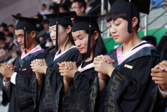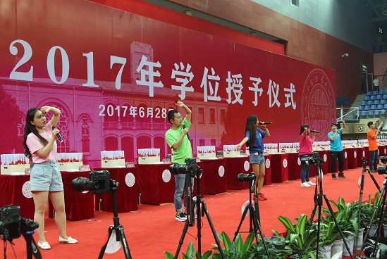 仪式最后,现场全体人员为同学们的万里前程,也为学校的未来发展共同许愿。在6位毕业生《毕业歌》的歌声带领下,全体毕业生齐唱毕业歌,主持人宣布学位授予仪式礼成。