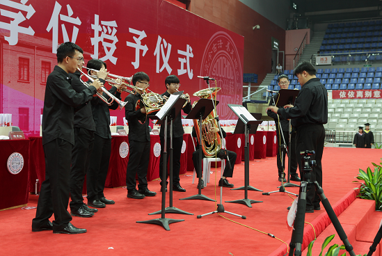 仪式正式开始前,暖场视频苏大版《好想你》的播放营造出浓浓的离别情,苏大学子为毕业生们献上了精彩的暖场演出。音乐学院同学们演出铜管重奏《奇异恩典》、《威风堂堂》、《欢乐颂》,来自电子信息学院、体育学院、音乐学院、沙钢钢铁学院、材料与化学化工学部的6名毕业生唱响了《东吴校歌》、苏大版《成都》和《我的未来不是梦》,赢得了现场观众的热烈掌声。