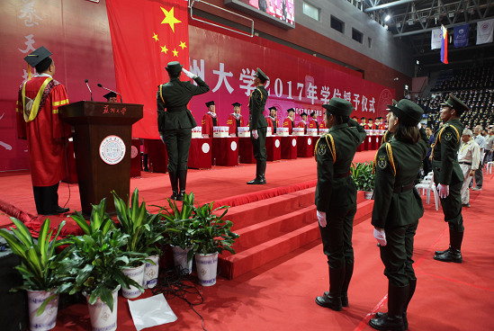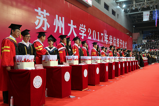 根据《苏州大学章程》、《苏州大学学位授予工作细则》,2017年我校共有5020位本科生获学士学位、3293位硕士研究生获硕士学位、345位博士研究生获博士学位。校学位评定委员会副主席、副校长蒋星红教授宣读了校学位评定委员会关于学士、硕士、博士学位授予决定。