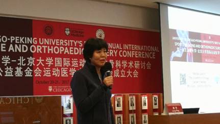 近年来,随着全民健身运动的开展以及竞技体育水平的发展,越来越多的人群积极投身到体育运动事业中。运动损伤已不仅常见于专业运动员,普通人群中运动型伤病的发病率也逐年增长。本次研讨会由芝加哥大学骨科、北京大学运动医学研究所联合举办,重点围绕运动损伤的防治和高水平运动员的保障展开学术讨论。郎教练多年来与运动医学结下“不解之缘”,运动医学专家们为中国女排在奥运争光道路上保驾护航,她从教练和运动员的角度阐述运动医学在国家奥运争光和全民健身道路上的重要作用。