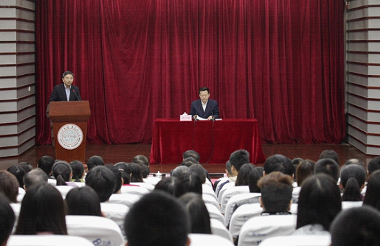 周乃翔指出,党的十九大在党和国家发展史上具有划时代、里程碑的意义。习近平总书记所作的报告,是我们党在新时代开启新征程、续写新篇章、夺取新胜利的政治宣言。大会通过的党章修正案,将习近平新时代中国特色社会主义思想确立为我们党长期坚持的指导思想,充分体现了十九大报告确立的重大理论观点和重大战略思想。习近平总书记在十九大报告中指出:“青年兴则国家兴,青年强则国家强。青年一代有理想、有本领、有担当,国家就有前途,民族就有希望。”党中央和习近平总书记高度重视十九大精神进校园工作,要求将学习党的十九大精神作为学校思想政治教育和课堂教学的重要内容。他充分肯定了苏州大学近年来取得的改革发展成果,并强调,苏州大学是苏州的骄傲,近年来更是取得快速发展,过去五年由教学研究型大学向研究型大学转型的跨越期,学校各项事业突飞猛进,取得了显著成绩。苏州大学如何以十九大精神为引领在新时代展现新作为,这是苏大全体师生尤其是青年学子们必须回答的问题。