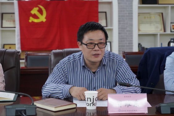 最后,苏州大学机关党工委副书记冒维东代表苏大机关党工委对两个支部的结对共建活动表示热烈祝贺,并对共建工作提出三点希望:第一要以政治建设为统领,全方位加强支部标准化、规范化建设;第二要以提升组织力为重点,大力开展学习型、服务型、法治型、创新型和廉洁型党支部建设;第三要围绕中心任务抓党建,使党建与业务同频共振。希望通过支部共建在组织设置、履行职责、党员队伍建设、组织生活等方面进行创新,形成可复制、可借鉴、可推广的经验模式。