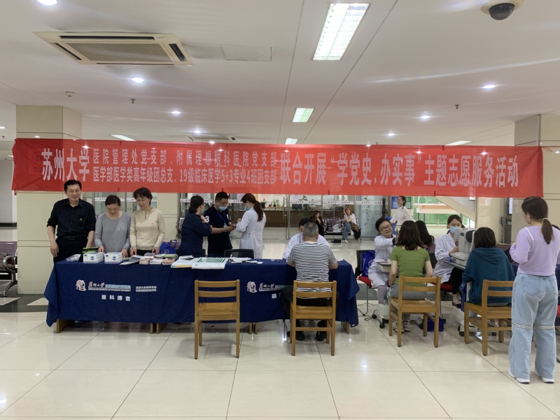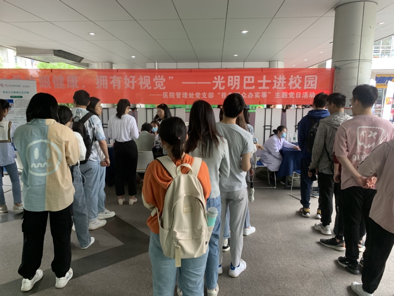 眼睛是人体最重要的感觉器官之一,近年来,升学压力、与生活现代化相关的环境因素如电脑等电子终端的普及,对近视眼患病率产生持续影响。近视不仅仅是医学问题,也已成为广大群众所共同关心的社会问题。如何切实有效地防治近视、保护视力,是当前急需解决的大事。此次主题“学党史、办实事”活动的开展,在一定程度上唤醒群众爱眼护眼的意识,同时通过群体来影响他们周边的人,让每个人都养成爱护眼睛、关注视力的好习惯,让更多人了解各类眼病危害,增强爱眼护眼意识。未来,医院管理处党支部将继续依托附属医院优质医疗资源,努力开展一系列为群众办实事活动。