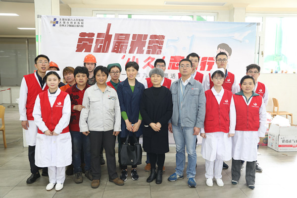 医院党委副书记郭亚萍、党办主任赵初营亲临现场,向工人们赠送健康物品。献爱心、送健康、医护人员身体力行传递尊重劳动、尊重创造,关爱生命的医者情怀。