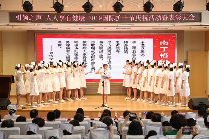 5月10日下午,苏州大学附属儿童医院举办了“引领之声·人人享有健康”——2019年“5.12”国际护士节庆祝活动暨表彰大会。苏州市卫健委医政处副处长潘红英、苏州市护理学会理事长薛小玲,院长汪健,党委书记卢祖元,副院长田健美,党委副书记、纪委书记邱鸣,副院长吕海涛,副院长严向明,各职能部门负责人及护士代表等200余人参加庆祝活动,共庆第108个国际护士节。