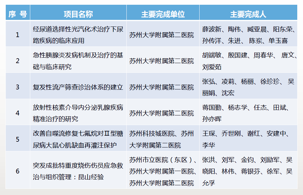 附二院获2018年苏州市医学会医学科技奖一等奖项目