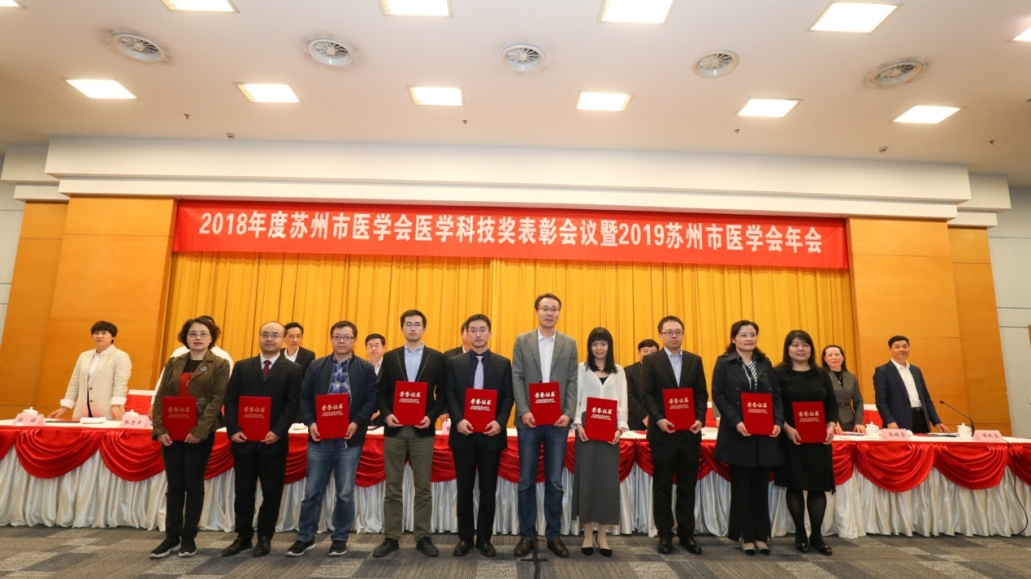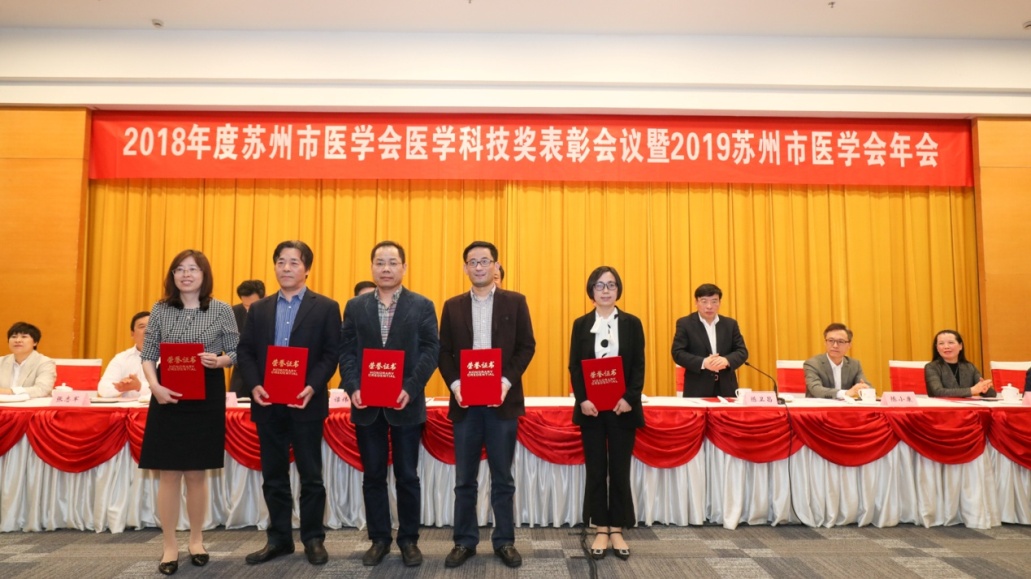 5月6日下午,苏州市医学会医学科技奖表彰会议暨2019年苏州市医学会年会召开,对获得2018年苏州市医学会医学科技奖的38个项目进行表彰。苏州大学附属第二医院作为第一完成单位获一等奖1项、二等奖3项、三等奖4项,作为合作单位获二等奖1项,三等奖2项,获奖项目位列全市各单位之首。