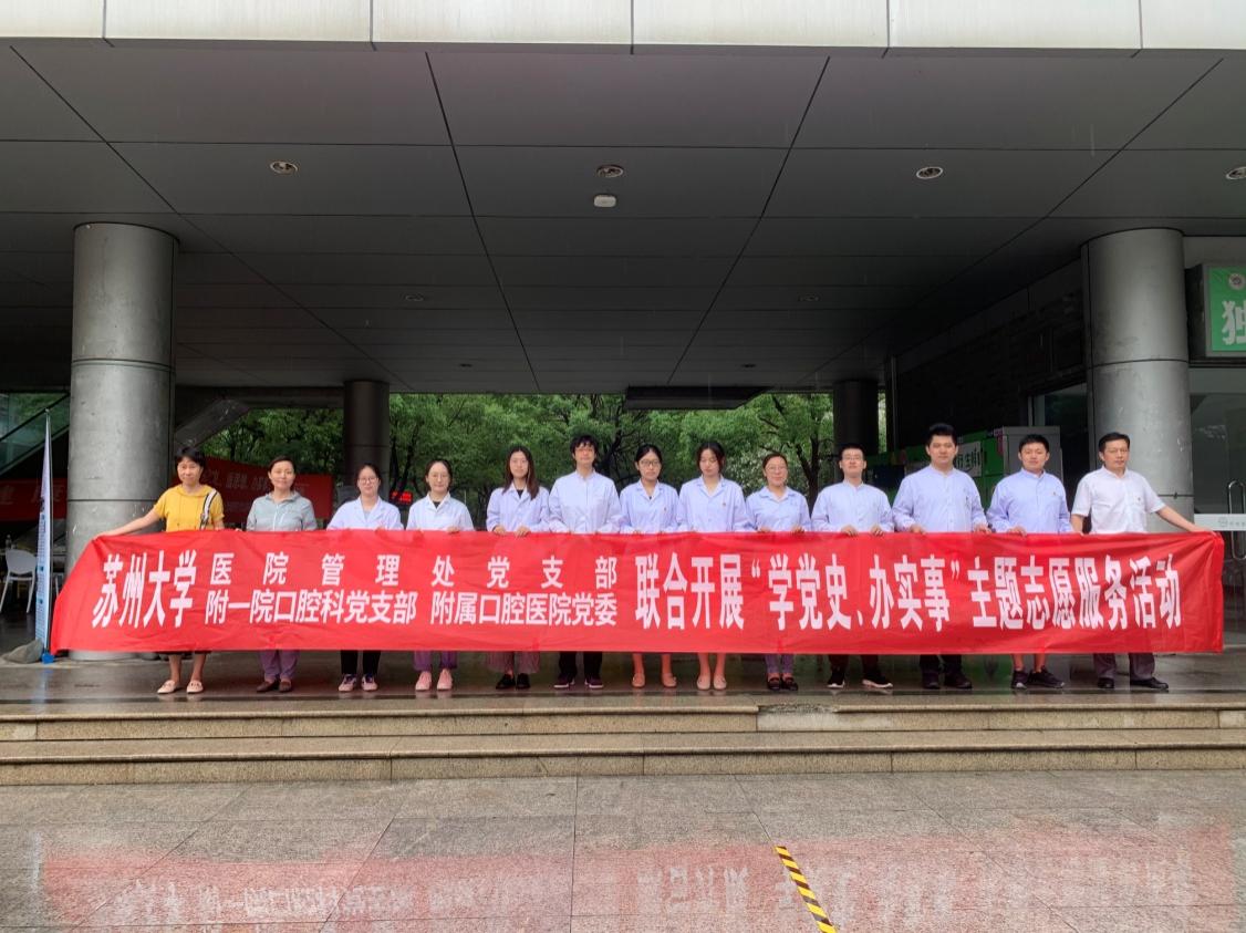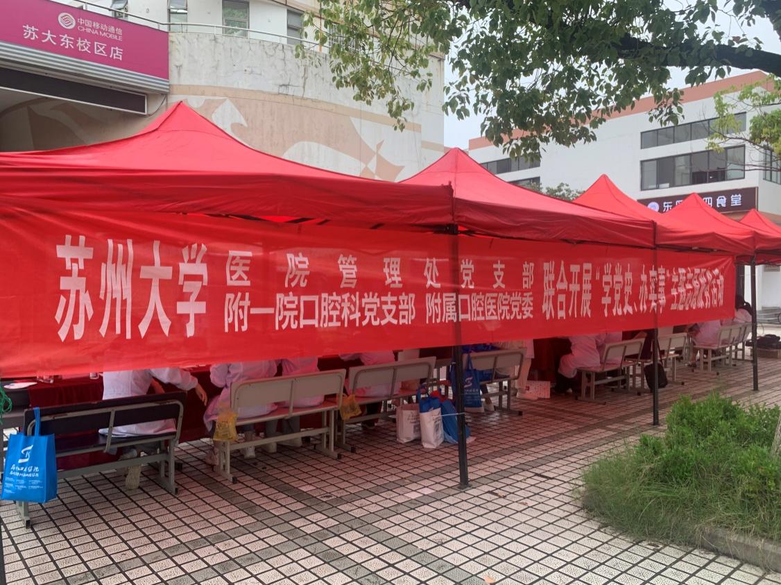 值此中国共产党建党100周年来临之际,医院管理处党支部围绕党中央统一部署认真开展“学党史、悟思想、办实事、开新局”的活动。继上次眼科义诊之后,再次联合苏州大学附属口腔医院党委、附一院口腔科党支部开展“为健康口腔而自豪-健康口腔助你美好生活”主题口腔义诊党日活动,组织专业的口腔医生走进校园,为师生们开展口腔健康知识科普宣传、义诊活动,让更多的人关注口腔健康,拥有美好生活。