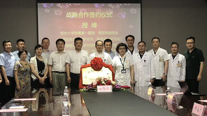 2021年7月13日,苏州大学附属第一医院与中国医药工业研究总院战略合作签约仪式在总院综合楼三楼305会议室顺利召开。出席签约仪式嘉宾有:苏州大学附属第一医院刘济生院长、缪丽燕副院长、药物临床研究机构办公室张华主任、伦理委员会徐溢涛主任、肿瘤科陈凯主任、心内科蒋廷波主任、血液科王荧主任等;中国医工总院魏树源院长、陆伟根院长、蔡正艳主任,医工院旗下上海益诺思生物技术股份有限公司(国家上海新药安全评价研究中心)常艳总经理,上海瀛科隆医药开发有限公司(医工总院药物临床研究中心)王俊龙总经理等。